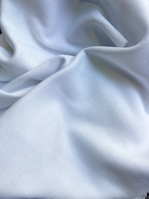 White 100% Combed Cotton Interlock double T-Shirt weight Jersey, 35% stretch