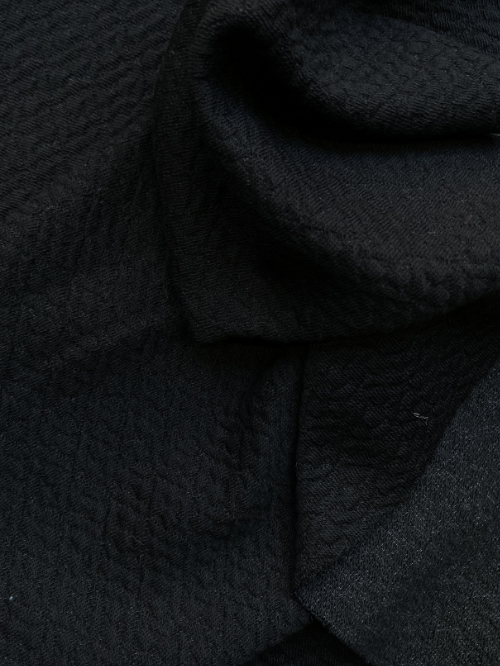 Black bubble textured 95% Cotton 5% Elastane stable ponte type jacquard double knit Jersey, 30% stretch