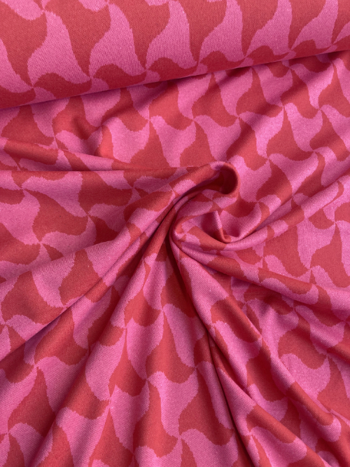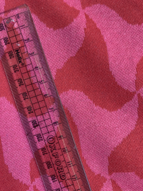 Fuchsia Pink and Red 62% Recycled Cotton 35% Recycled Polyester 3% Elastane jacquard stable Jumper Knit Jersey, 25% Stretch