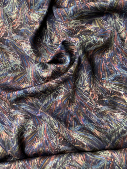 Aubergine, Olive and Plum Purple abstract starburst paint strokes 100% Silk Satin backed Crepe (strokes approx 8cm)