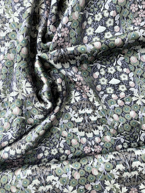 Sage Green, Olive, Dusky Pink Liberty style ditsy floral print 100% Silk Satin backed Crepe