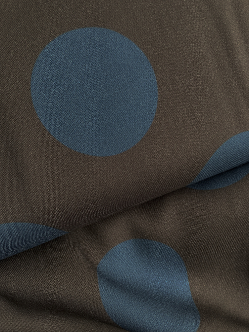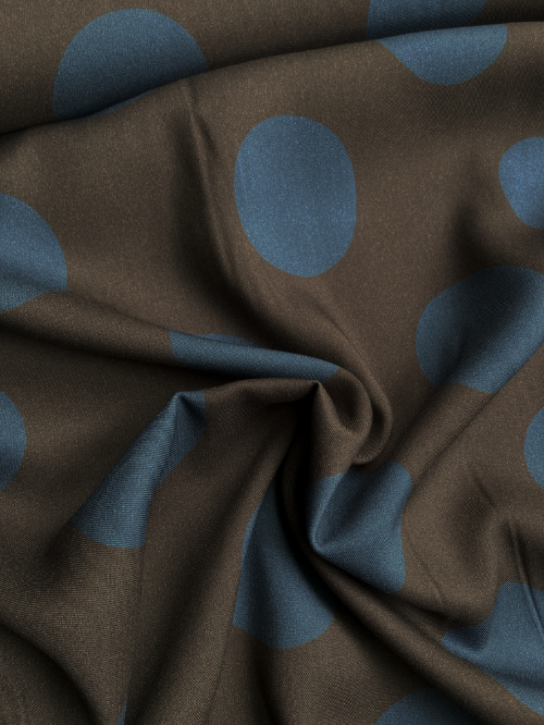 Dark Brown and Teal Blue 65mm large spot print 100% brushed Viscose Twill