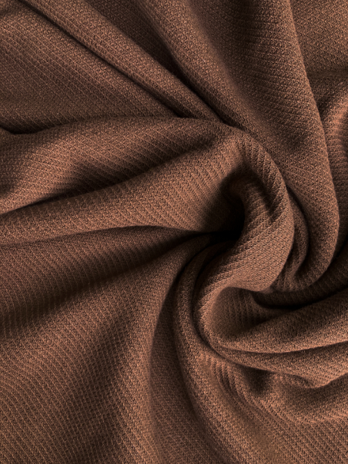 Conker Brown textured French Terry backed 100% Cotton Jumper Knit Jersey, 20% Stretch