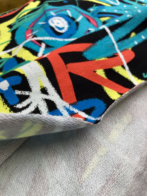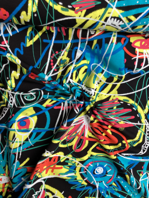 Black and Multicolour Basquiat Graffiti style digital print 95% Cotton 5% Elastane French Terry medium weight Jersey