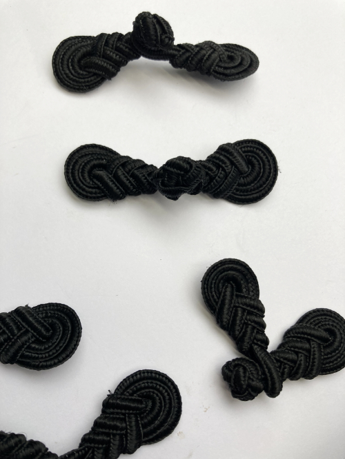 Black braided polyester Frog Fastener. Sold per pair